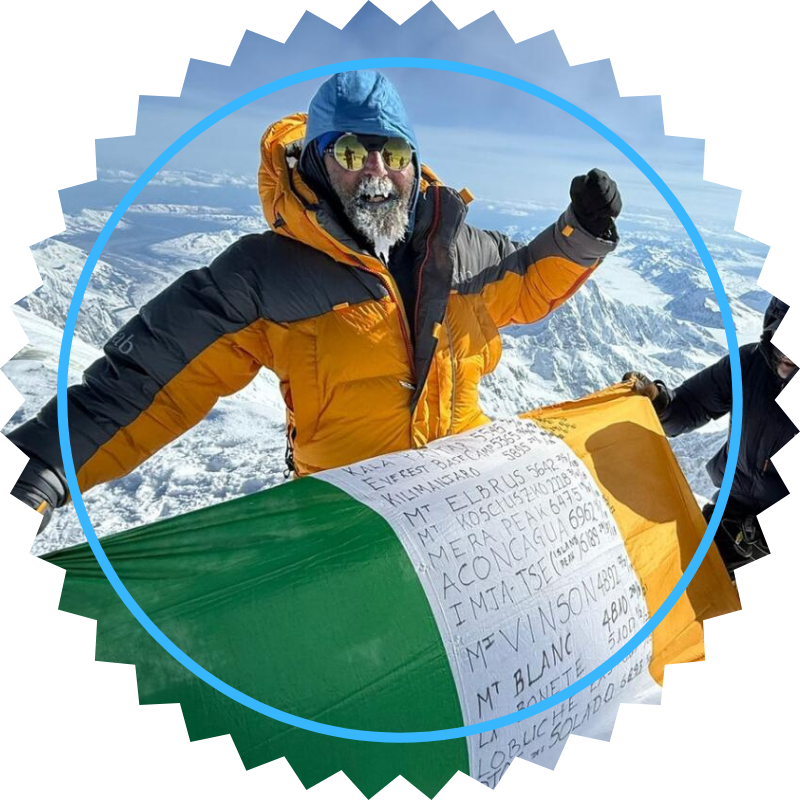 Andy Nolan (46) is from Charleville in Co. Cork, now living in Limerick. He is an adjunct lecturer and PhD student at University of Limerick. He is climbing Everest with the US-based ‘Climbing the Seven Summits’ (CTSS) company, and is part of their Western Guided team. Andy has been climbing since 2018 and is attempting to complete the Seven Summits (Bass list). Everest will hopefully be his seventh and final summit in the series, having successfully climbed Kilimanjaro, Elbrus, Aconcagua, Denali, Kosciuszko and Vinson. Throughout his Seven Summits, Andy has raised over €100,000 for charities including the Children’s Grief Centre, Irish Cancer Society and LauraLynn Children’s Hospice. For Everest, Andy is raising funds for Childrens Grief Centre in Limerick, with 100% of all funds raised going to the charity.